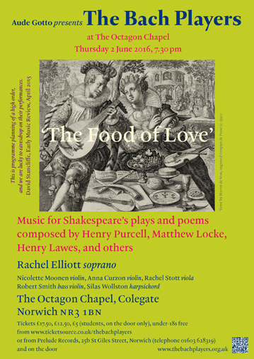 Shakespeare’s plays were at the heart of the Restoration theatrical repertory. Freely adapted, with lavish music and spectacular staging, a number of them remained popular even after a new Restoration repertory had developed. In this programme, music by Henry Purcell is placed alongside that of his predecessors, Matthew Locke and Robert Smith, and of his pupil John Weldon, painting a picture of changing musical approaches to the words of the bard. The programme also includes the earliest surviving setting of a sonnet by Shakespeare, an adaptation of Sonnet no. 116 by Henry Lawes.