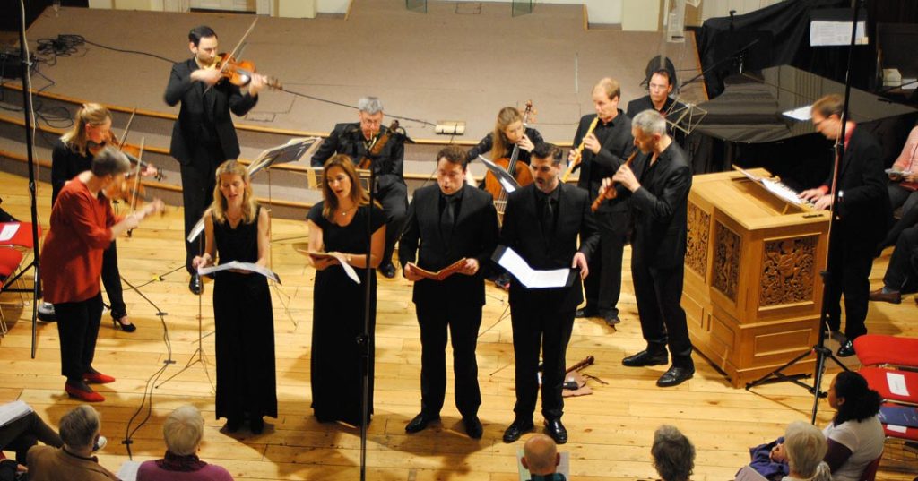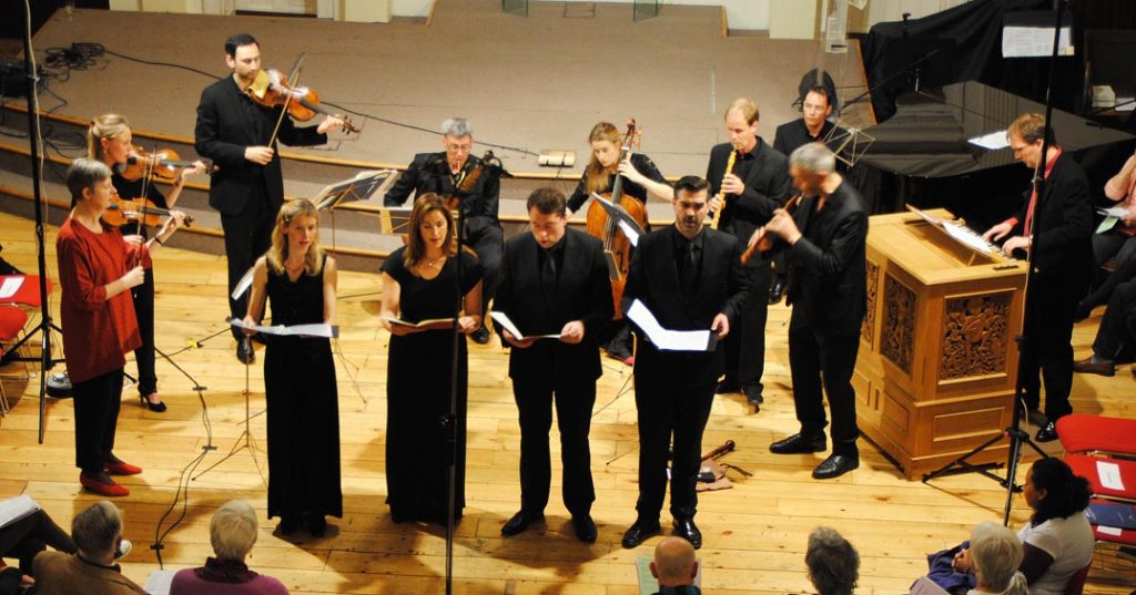 We have been wrapping up our ‘Bach and before’ project – concerts in Norwich and London, and then last week the recording sessions for what will be a CD of the music. We had an enthusiastic reception at both concerts, with probably our largest ever audience numbers in these two churches. The photographs taken from the gallery at St John’s Downshire Hill may suggest something of the atmosphere at this outstanding venue.