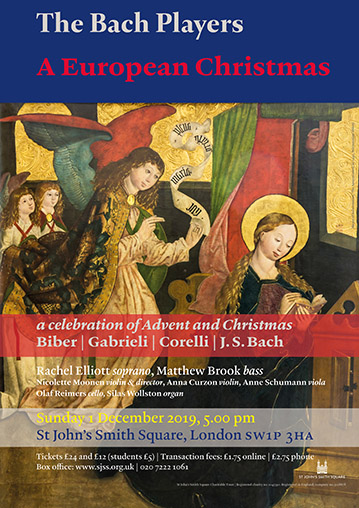 A concert in celebration of Advent and Christmas, starting with music from the Austro-Italian seventeenth-century Catholic tradition; from the Annunciation to the birth of Jesus, with the focus on Mary and the baby Jesus. After the interval: the eighteenth-century Lutheran tradition in Germany with two cantatas by J. S. Bach: ‘Schwingt freudig euch empor’, composed for the first Sunday in Advent, and ‘Selig ist der Mann’, composed for second Christmas day.