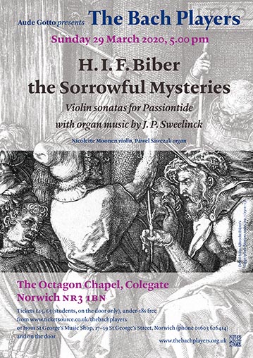 Nicolette Moonen and Pawel Siwczak perform the second cycle of H.I.F. Biber’s Rosary or Mystery sonatas. This cycle is concerned with the death of Christ and the events that surrounded it. Pawel Siwczak will also play organ music by J.P. Sweelinck and Heinrich Scheidemann.