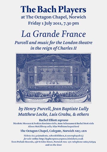 Rachel Elliott soprano, Nicolette Moonen & Foskien Kooistra violin, Anne Schumann & Rachel Stott viola, Alison McGillivray cello, Silas Wollston harpsichord