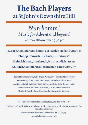 Rachel Elliott soprano, Sally Bruce-Payne alto, Nicholas Mulroy tenor, Peter Harvey bass, James Eastaway & Catherine Latham oboe, Alastair Mitchell bassoon, Nicolette Moonen & Sophie Barber violin, Rachel Stott & Rachel Isserlis viola, Alison McGillivray cello, Elizabeth Bradley double bass, Silas Standage organ