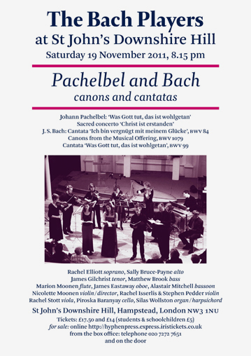 A second selection of music by Johann Sebastian Bach and his predecessor Johann Pachelbel (following the concerts in November 2010)