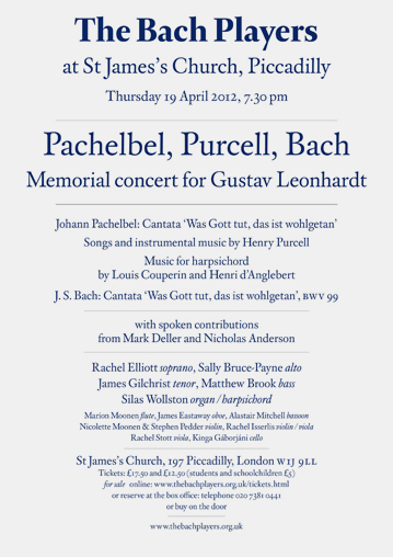 Pachelbel, Purcell, Bach: memorial concert for Gustav Leonhardt