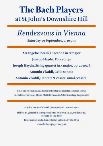 Sally Bruce-Payne alto, Rodolfo Richter & Nicolette Moonen violin, Rachel Isserlis viola, Alison McGillivray cello, Silas Standage harpsichord