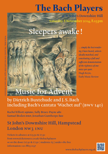 (Rachel Elliott soprano, Sally Bruce-Payne alto, Samuel Boden tenor, Jonathan Gunthorpe bass, Nicolette Moonen violin, Anne Schumann violin, Oliver Webber violin, Catherine Weiss violin, James Eastaway oboe, Mark Radcliffe oboe, Richard Earle oboe, Alastair Mitchell bassoon, Reiko Ichise viola da gamba, Olaf Reimers cello, Pawel Siwczak harpsichord / organ)