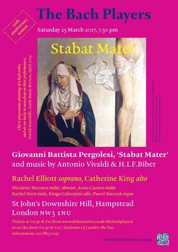 In praise of the Virgin Mary: Pergolesi’s setting of the Stabat Mater text, the Concerto Madrigalesco by Vivaldi and one of his Sonatas al Santo Sepolcro, and a Mystery Sonata by Biber